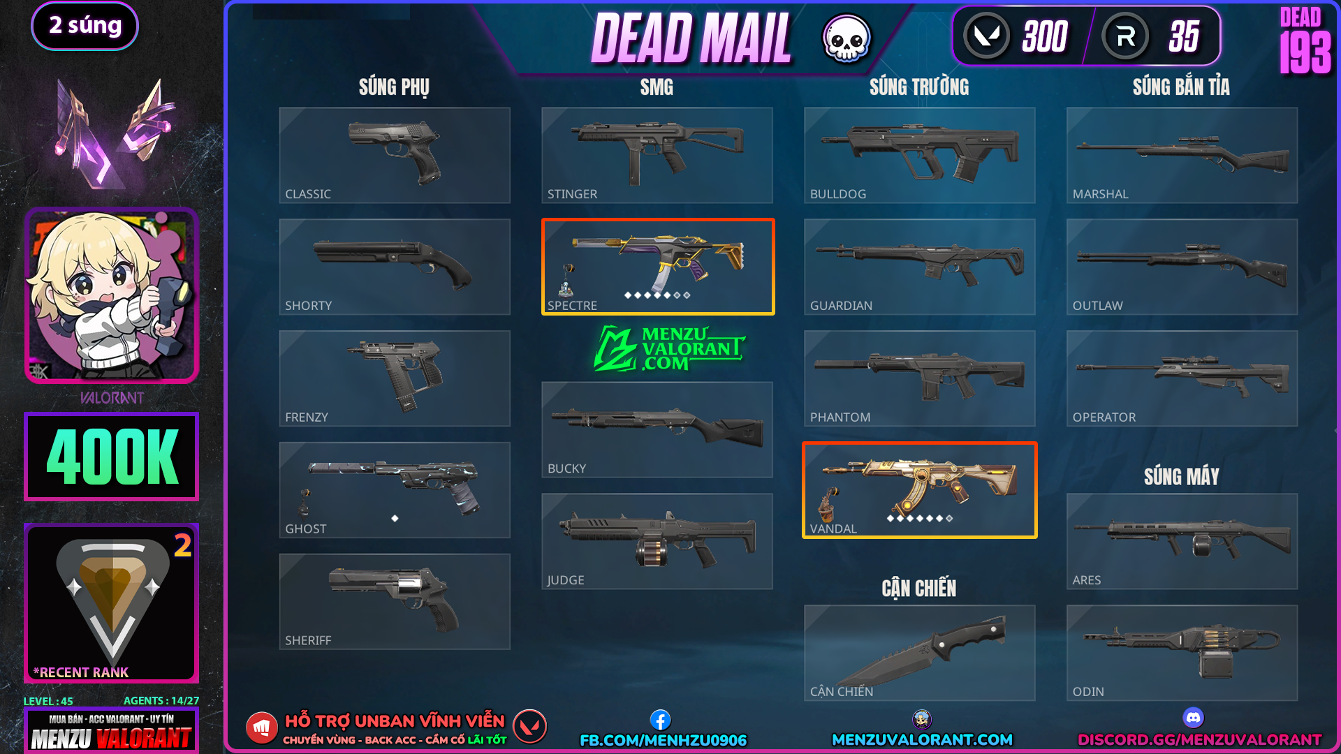 Acc Valorant dead193 | Rank BRONZE 1 | Giá: 400.000đ