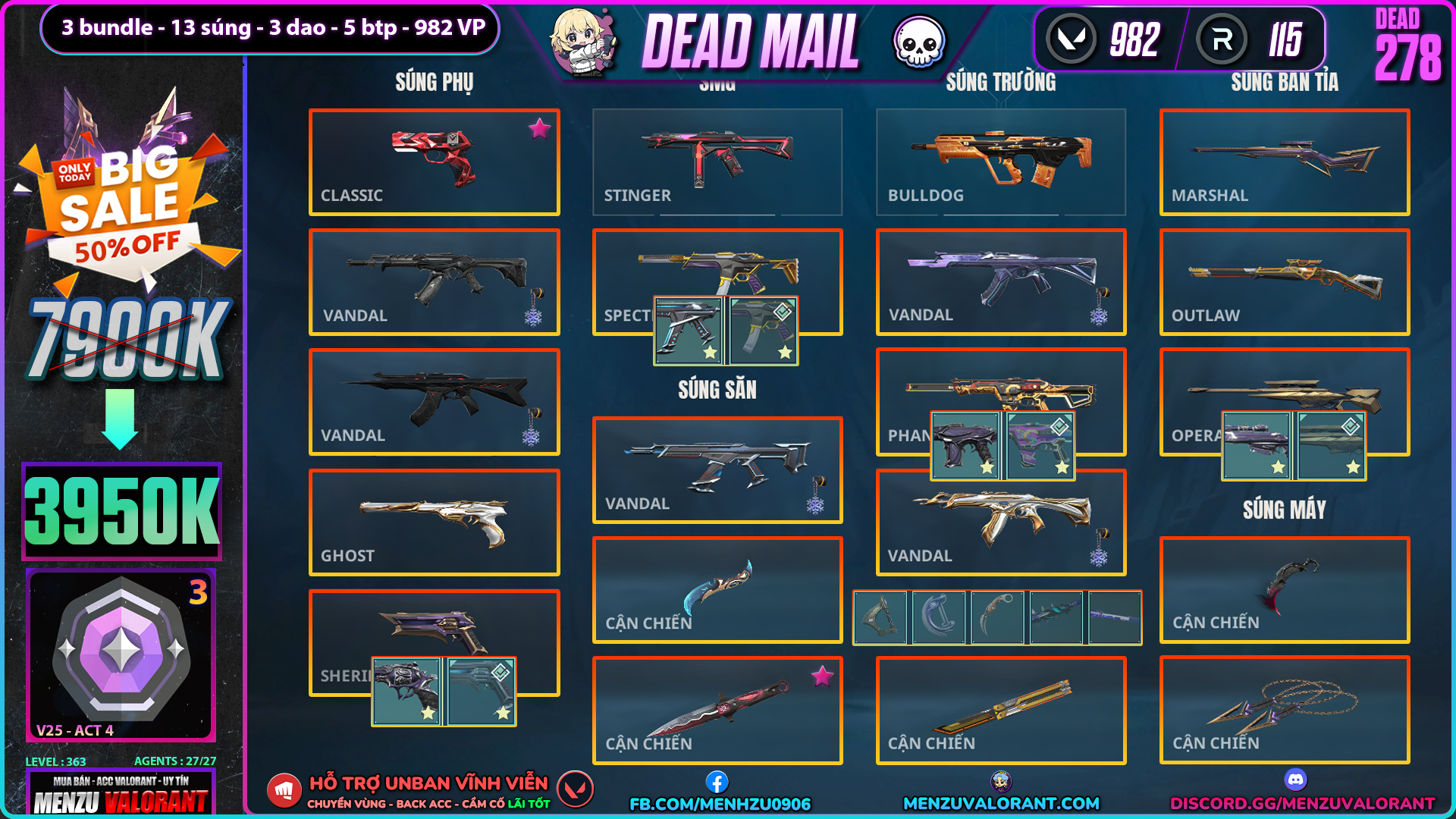 Acc Valorant dead278 | Rank DIAMOND 3 | Giá: 3.950.000đ