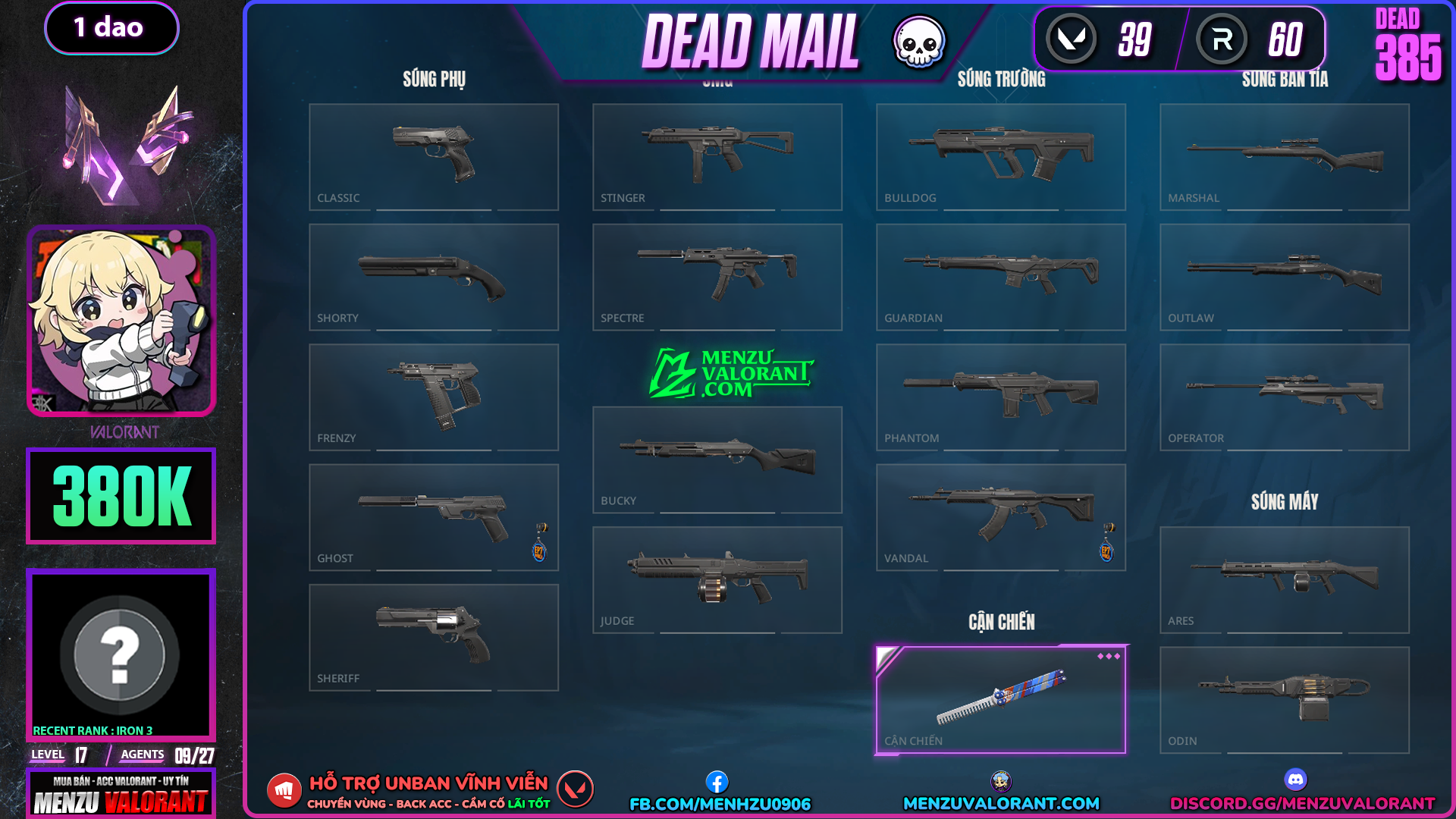 Acc Valorant dead385 | Rank IRON 3 | Giá: 380.000đ