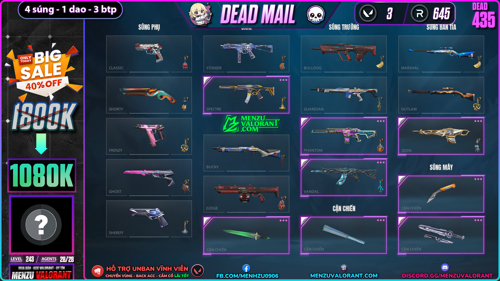 Acc Valorant dead435 | Rank ASCENDANT 1 | Giá: 1.080.000đ