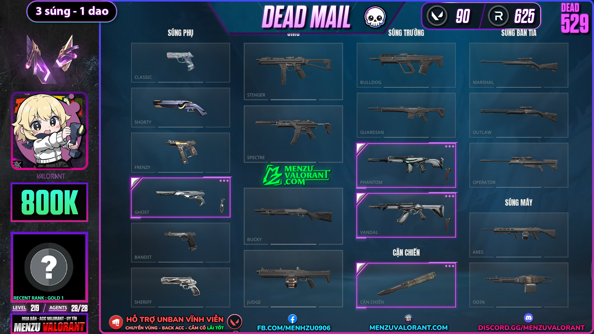 Acc Valorant dead529 | Rank GOLD 2 | Giá: 800.000đ
