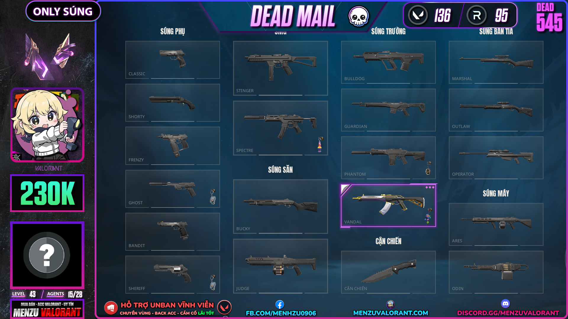 Acc Valorant dead545 | Rank GOLD 3 | Giá: 230.000đ