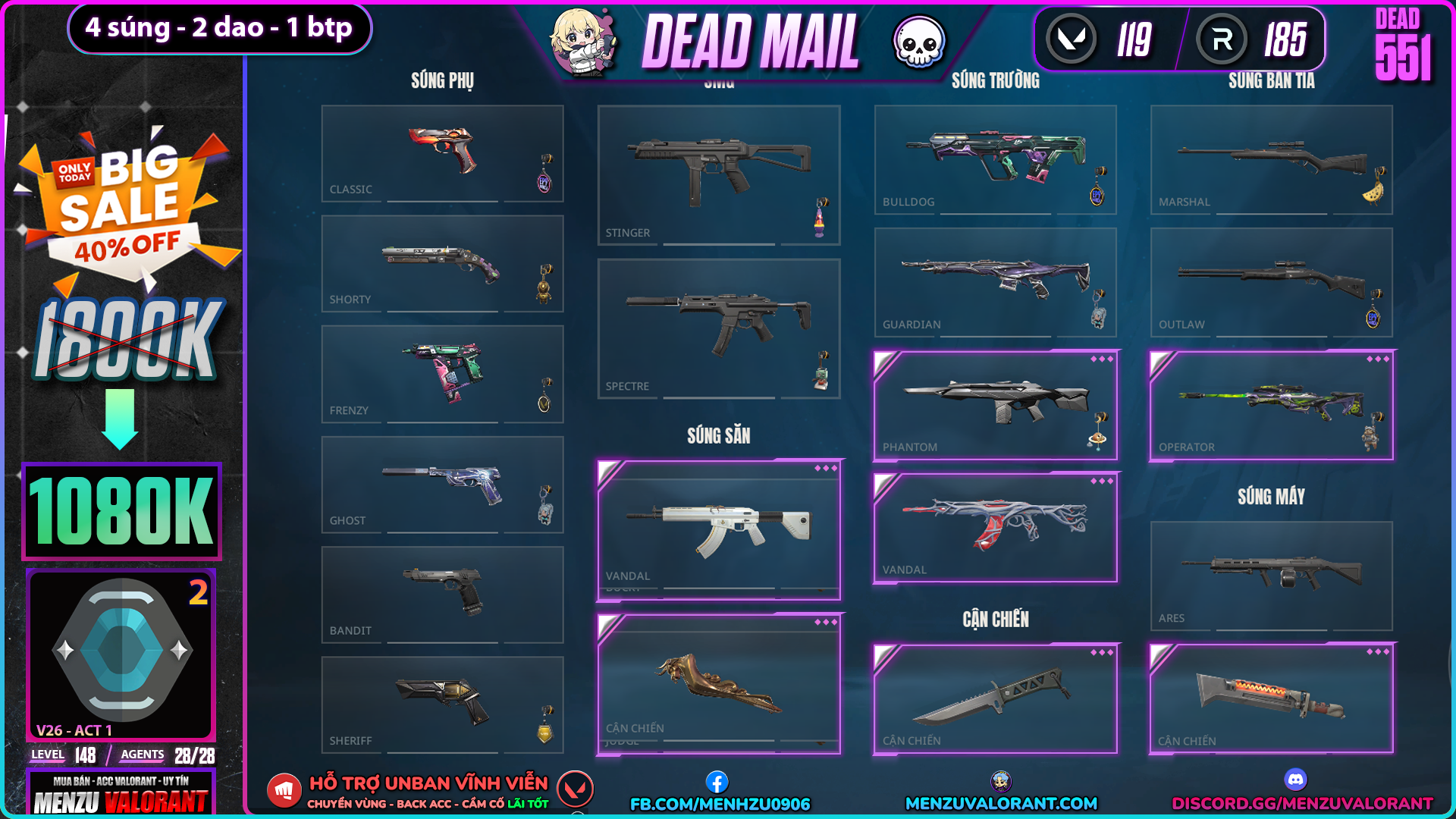 Acc Valorant dead551 | Rank PLATINUM 3 | Giá: 1.080.000đ