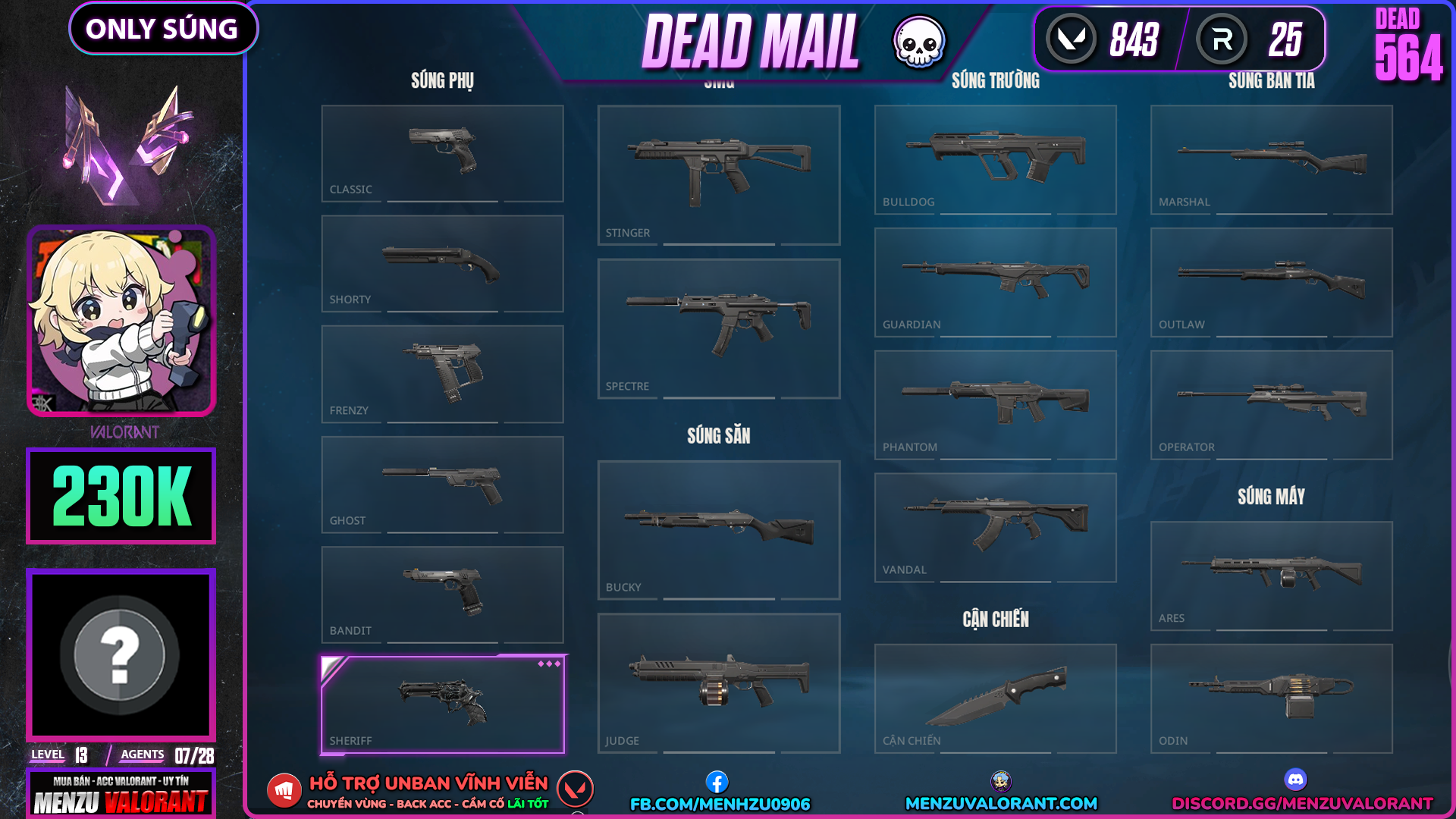 Acc Valorant dead564 | Rank Unranked | Giá: 230.000đ