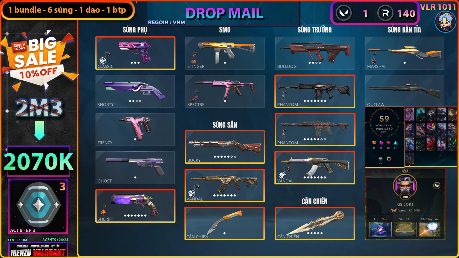 Acc Valorant vlr1011 | Rank PLATINUM 3 | Giá: 2.070.000đ