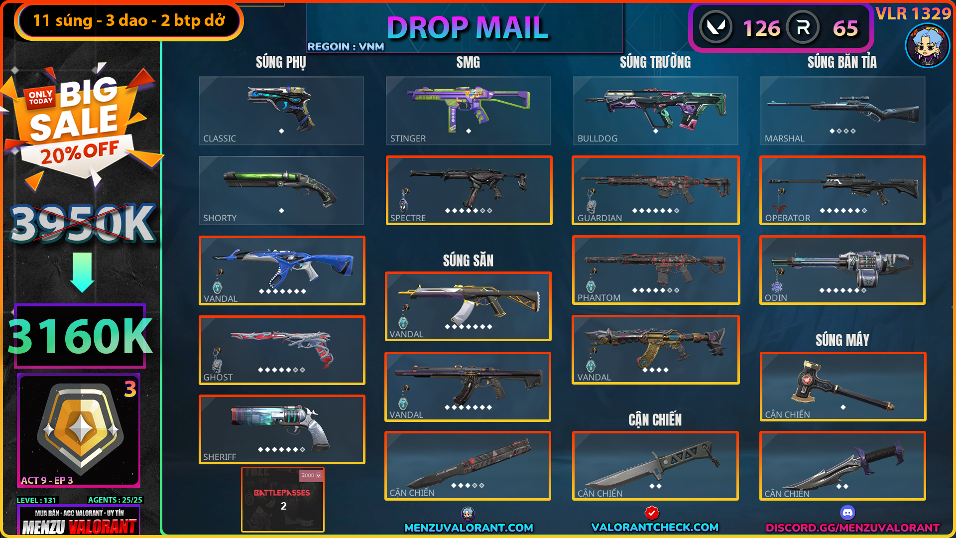 Acc Valorant vlr1329 | Rank BRONZE 3 | Giá: 3.160.000đ