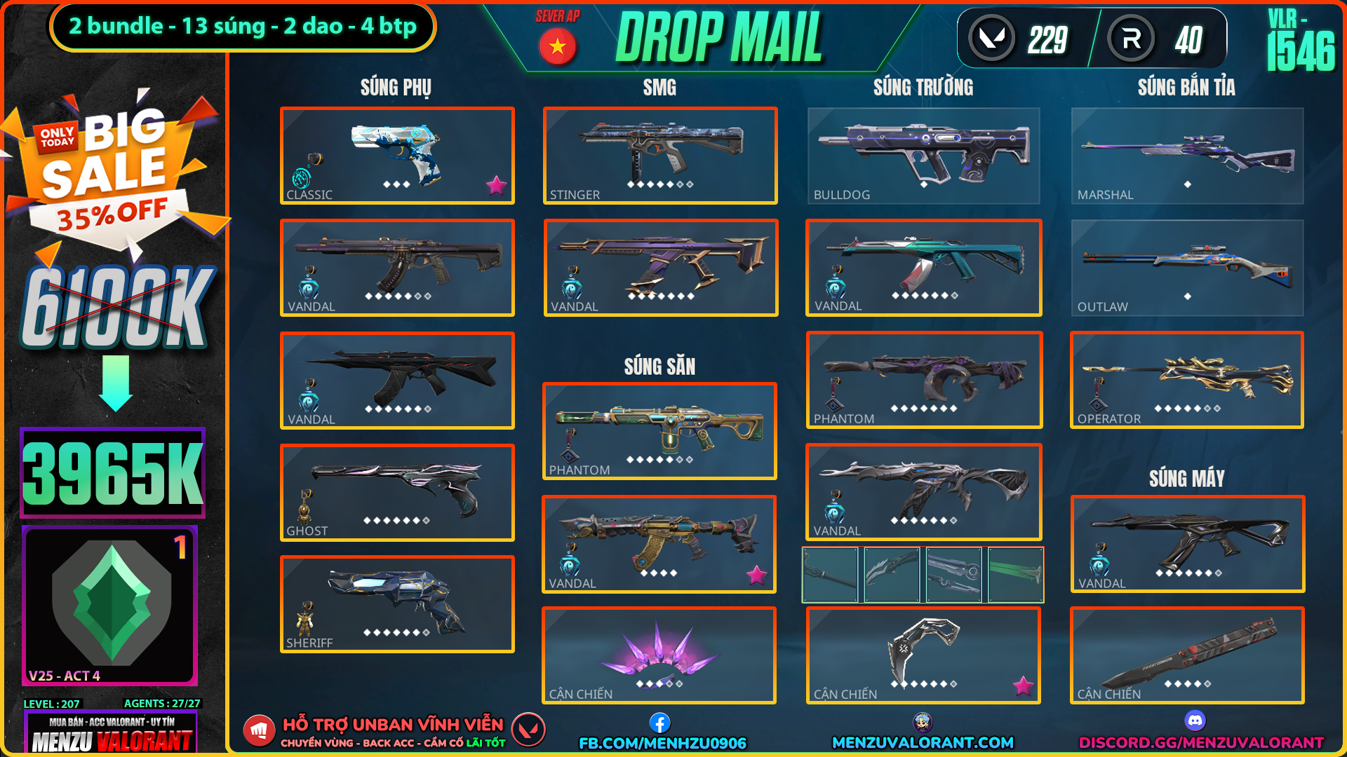 Acc Valorant vlr1546 | Rank ASCENDANT 1 | Giá: 3.965.000đ