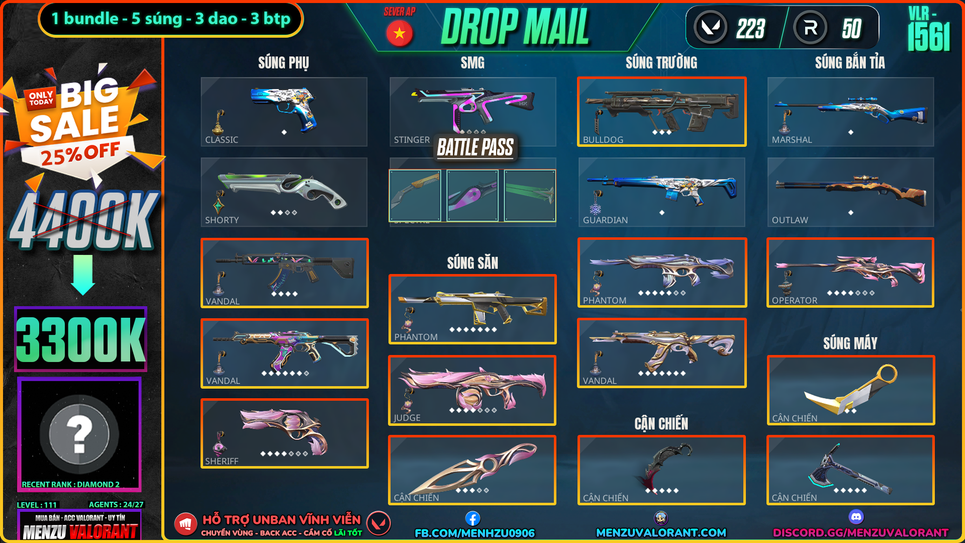 Acc Valorant vlr1561 | Rank DIAMOND 1 | Giá: 3.300.000đ