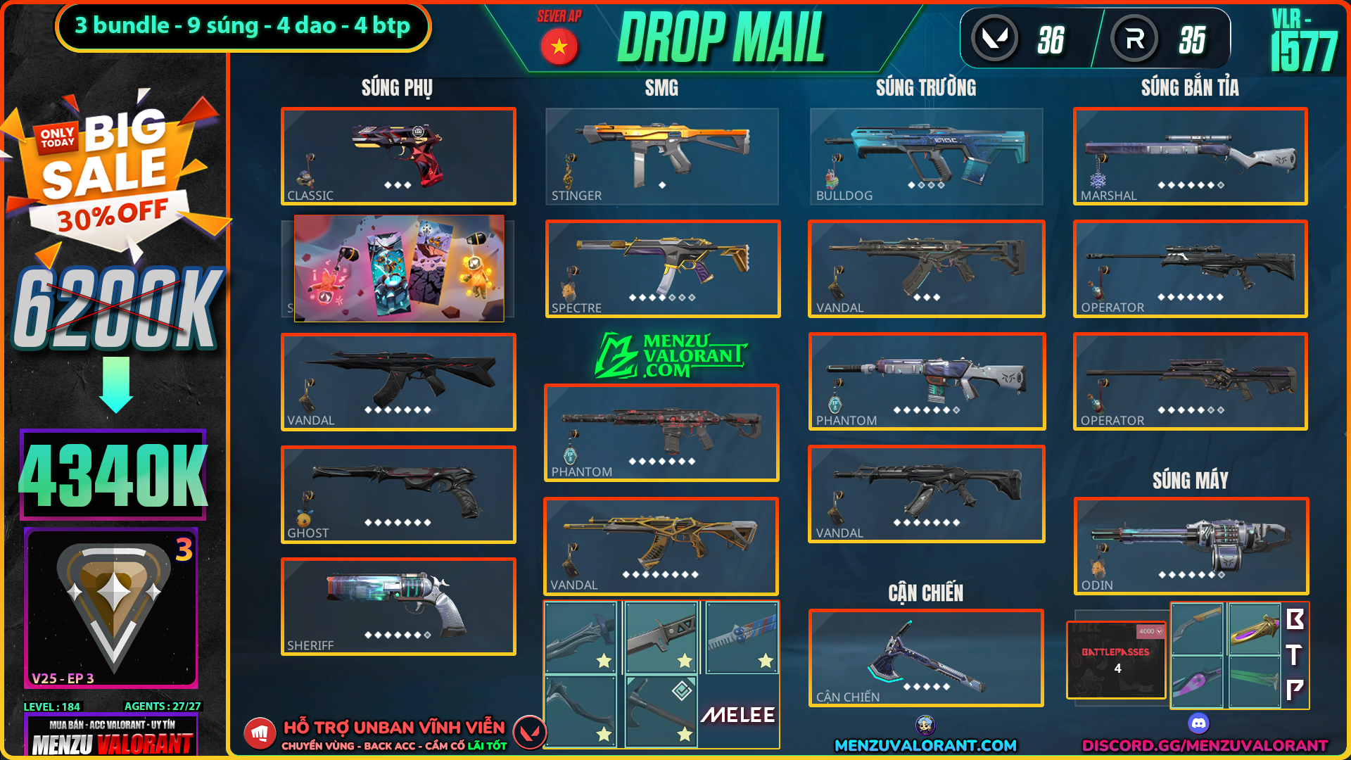Acc Valorant vlr1577 | Rank BRONZE 2 | Giá: 4.340.000đ