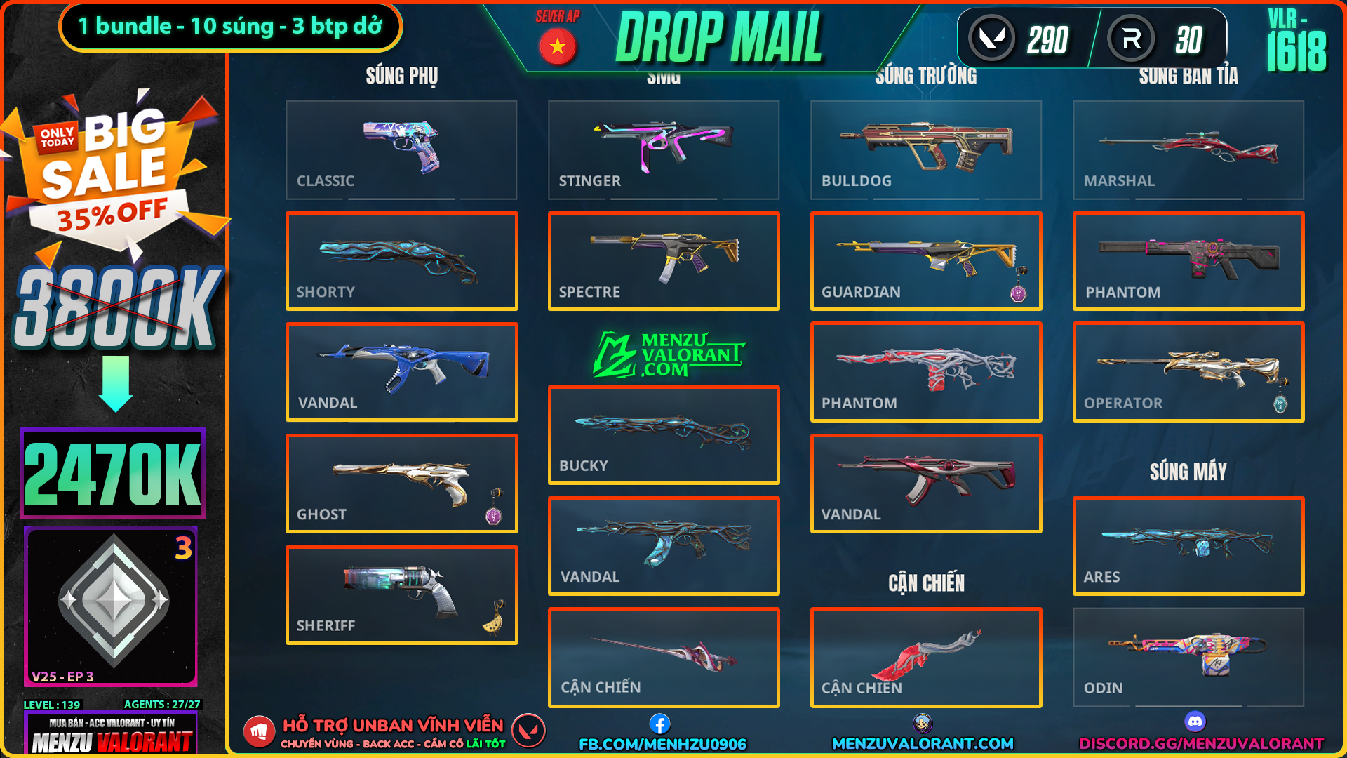 Acc Valorant vlr1618 | Rank BRONZE 2 | Giá: 2.470.000đ