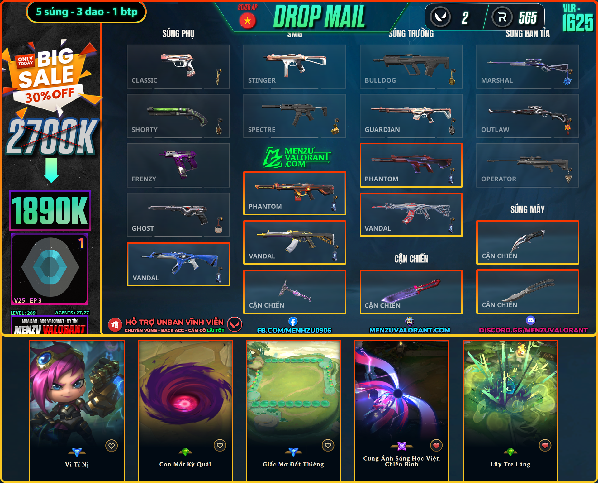 Acc Valorant vlr1625 | Rank PLATINUM 1 | Giá: 1.890.000đ