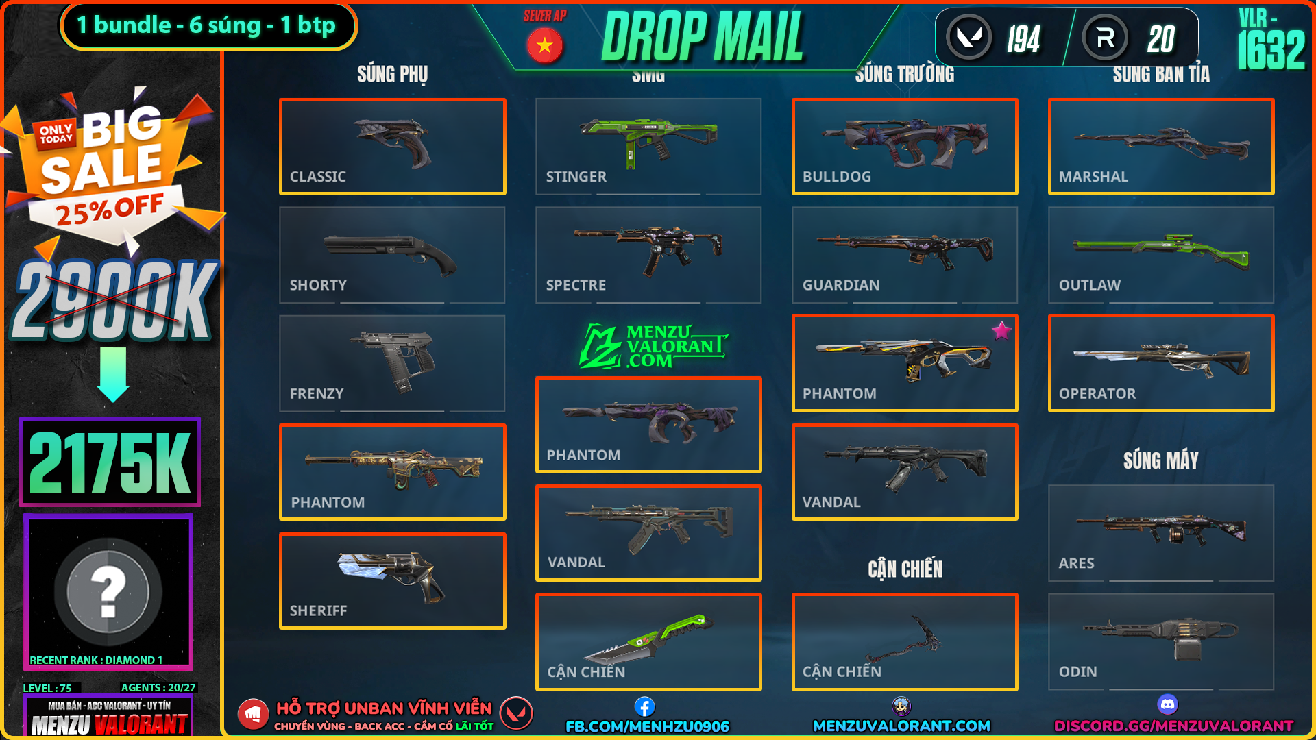 Acc Valorant vlr1632 | Rank GOLD 3 | Giá: 2.175.000đ