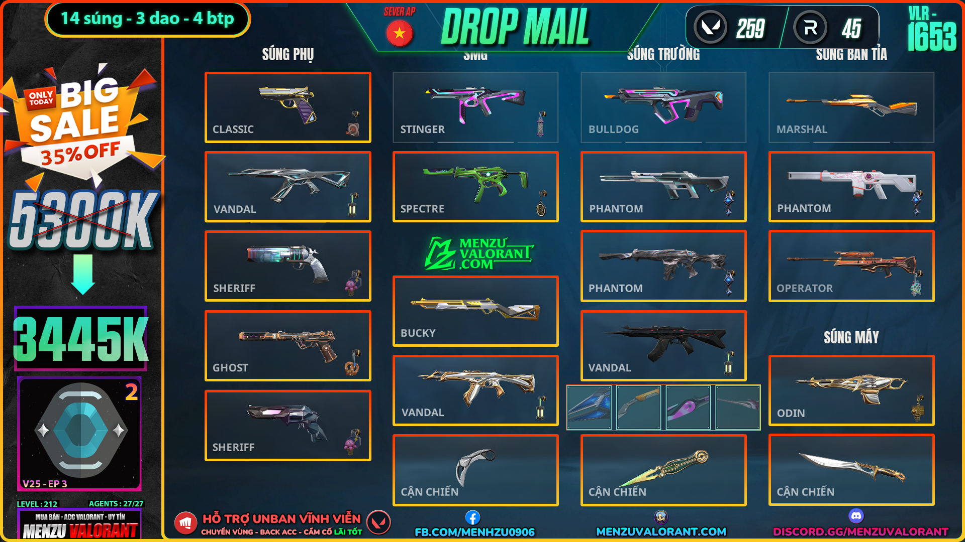 Acc Valorant vlr1653 | Rank PLATINUM 2 | Giá: 3.445.000đ