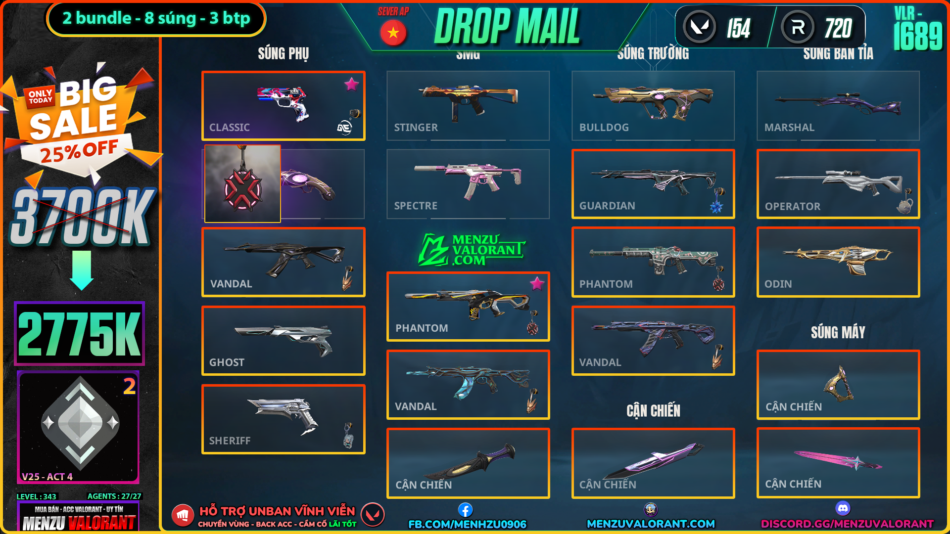 Acc Valorant vlr1689 | Rank SILVER 2 | Giá: 2.775.000đ