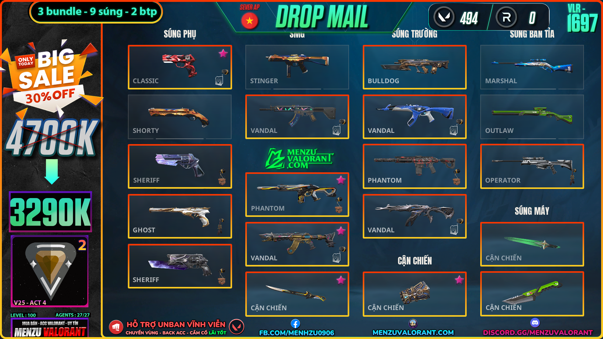 Acc Valorant vlr1697 | Rank SILVER 1 | Giá: 3.290.000đ