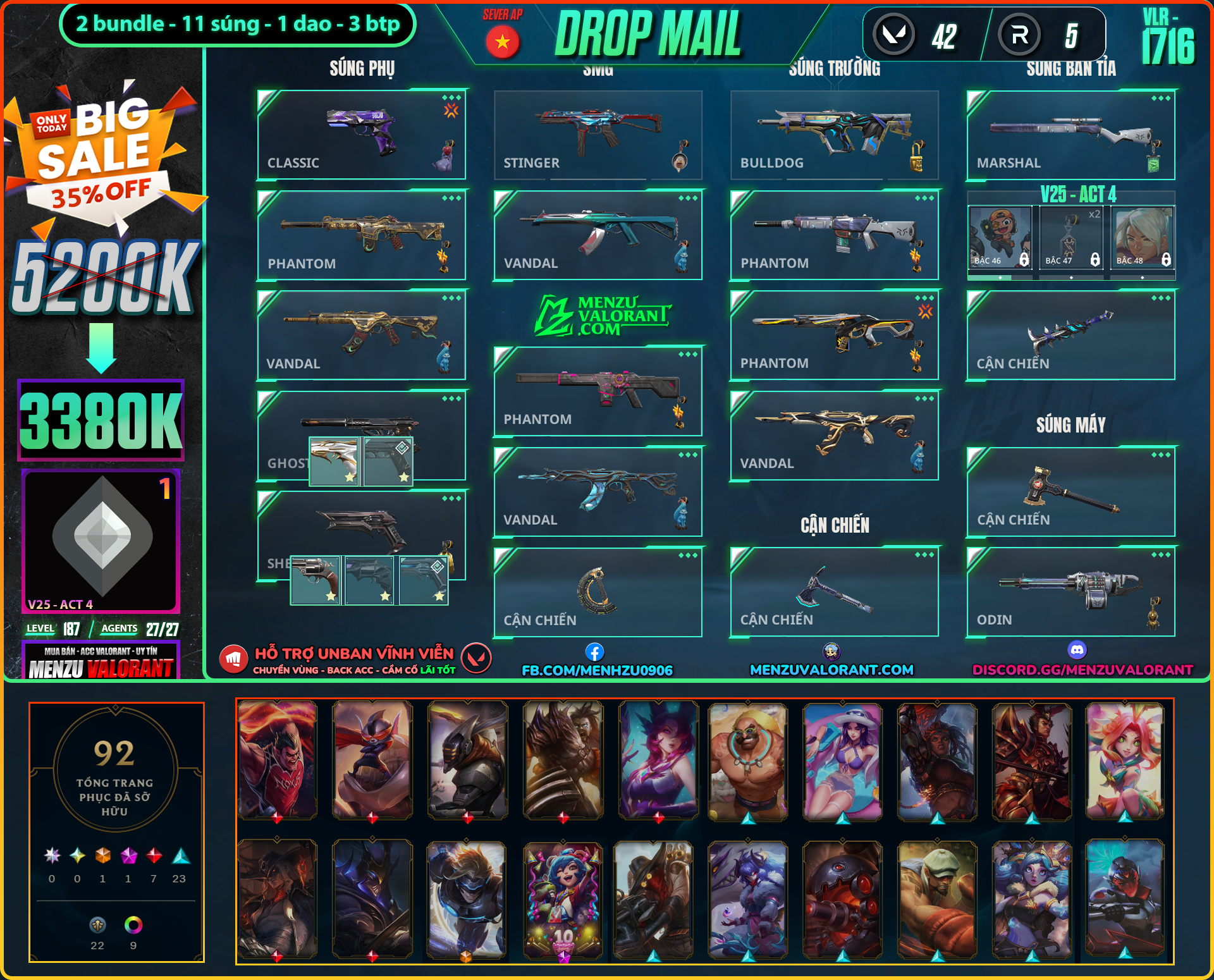 Acc Valorant vlr1716 | Rank SILVER 1 | Giá: 3.380.000đ