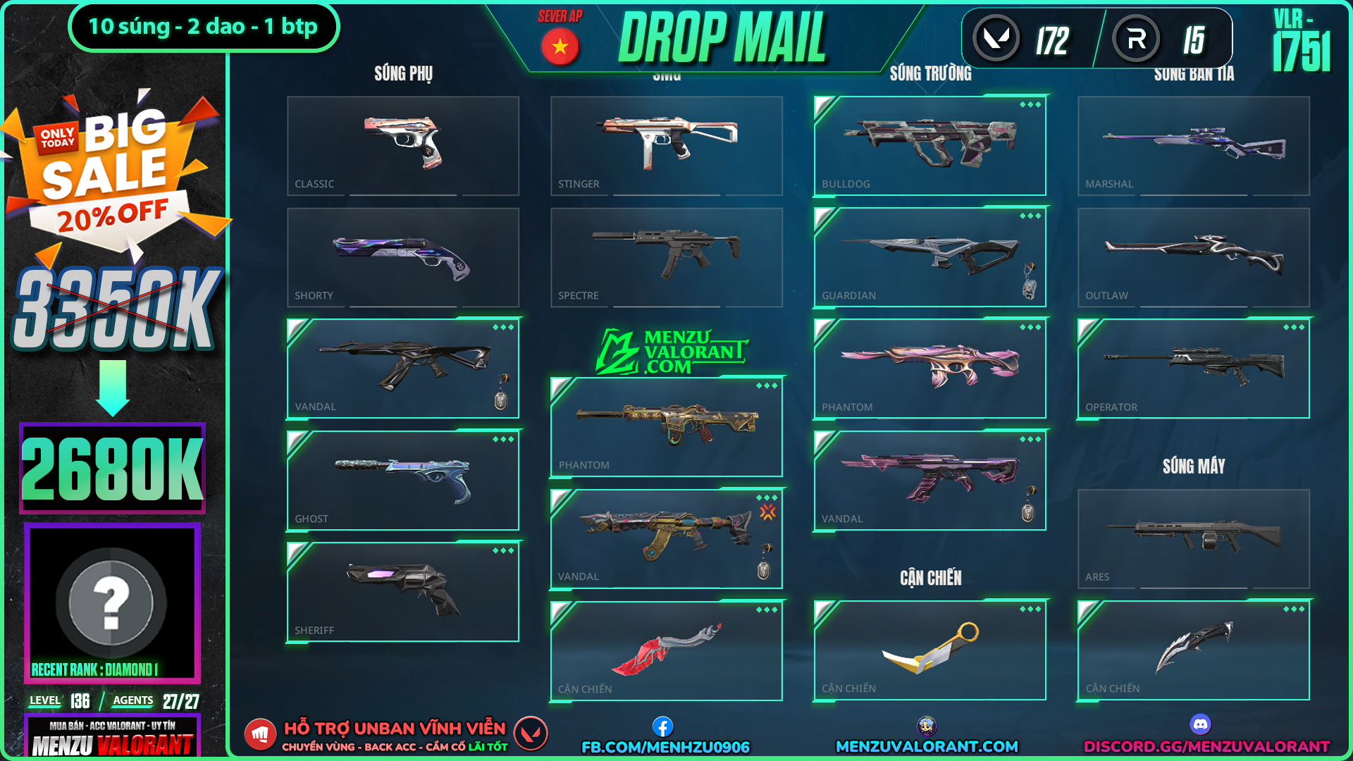 Acc Valorant vlr1751 | Rank GOLD 2 | Giá: 2.680.000đ