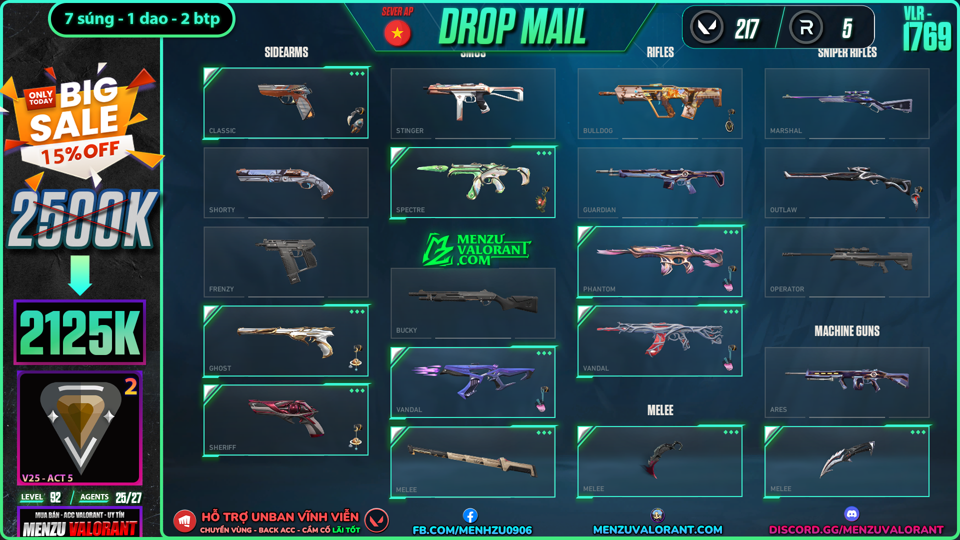 Acc Valorant vlr1769 | Rank BRONZE 2 | Giá: 2.125.000đ