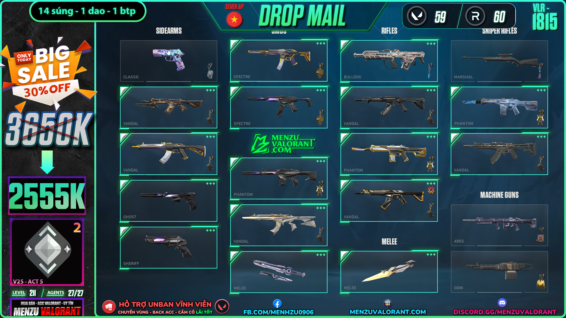 Acc Valorant vlr1815 | Rank SILVER 2 | Giá: 2.550.000đ