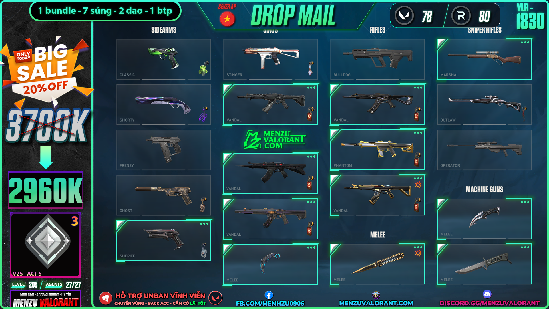 Acc Valorant vlr1830 | Rank SILVER 3 | Giá: 2.960.000đ