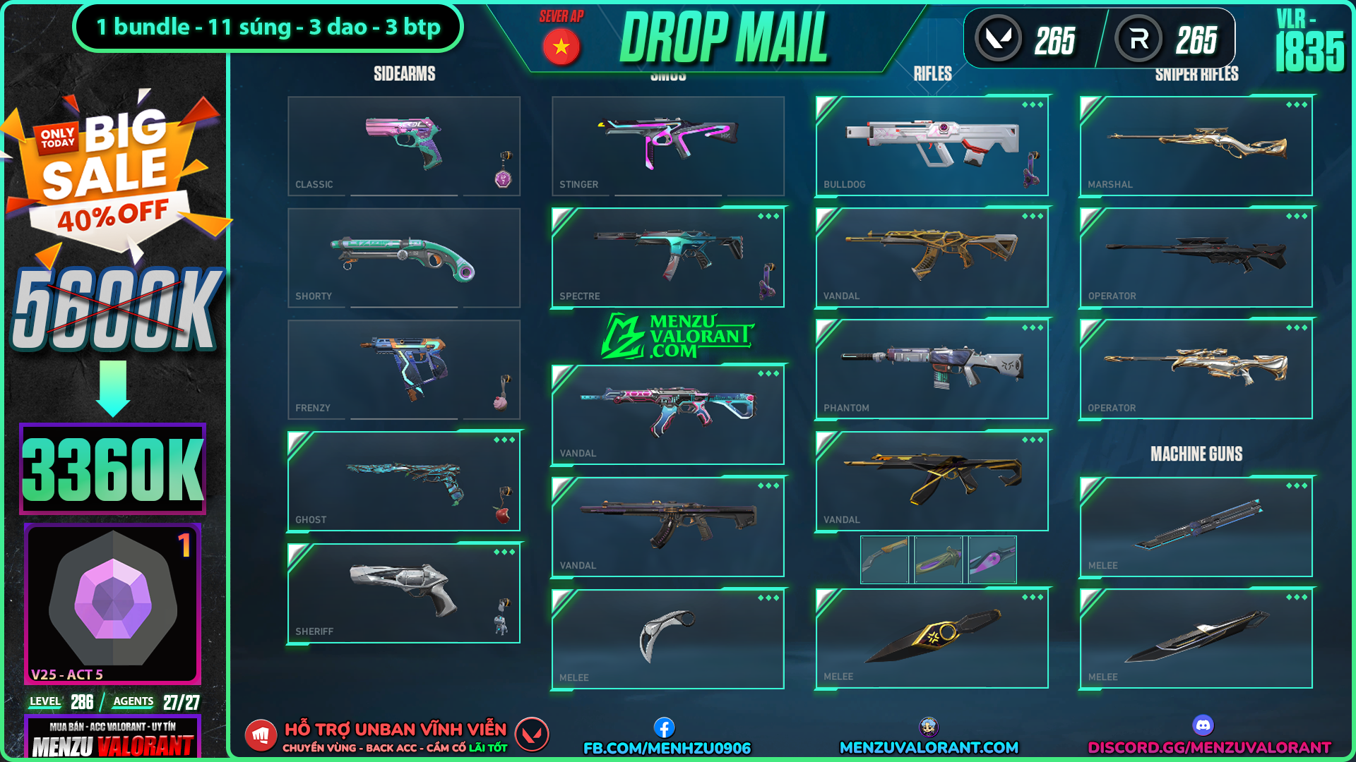 Acc Valorant vlr1835 | Rank DIAMOND 1 | Giá: 3.360.000đ