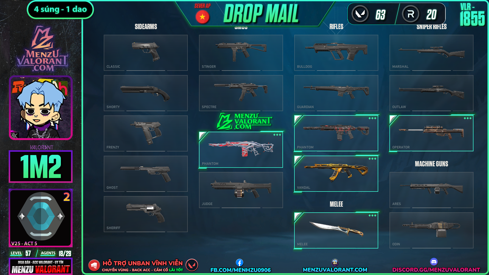 Acc Valorant vlr1855 | Rank GOLD 2 | Giá: 1.200.000đ