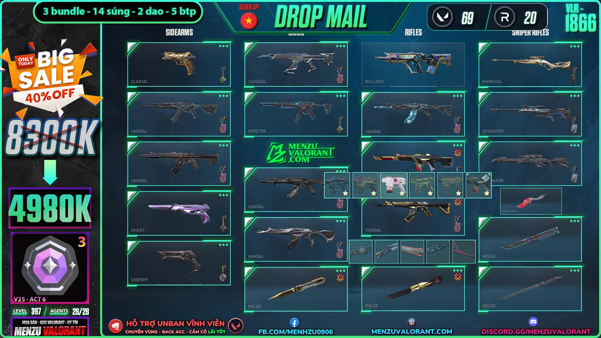 Acc Valorant vlr1866 | Rank DIAMOND 3 | Giá: 4.980.000đ