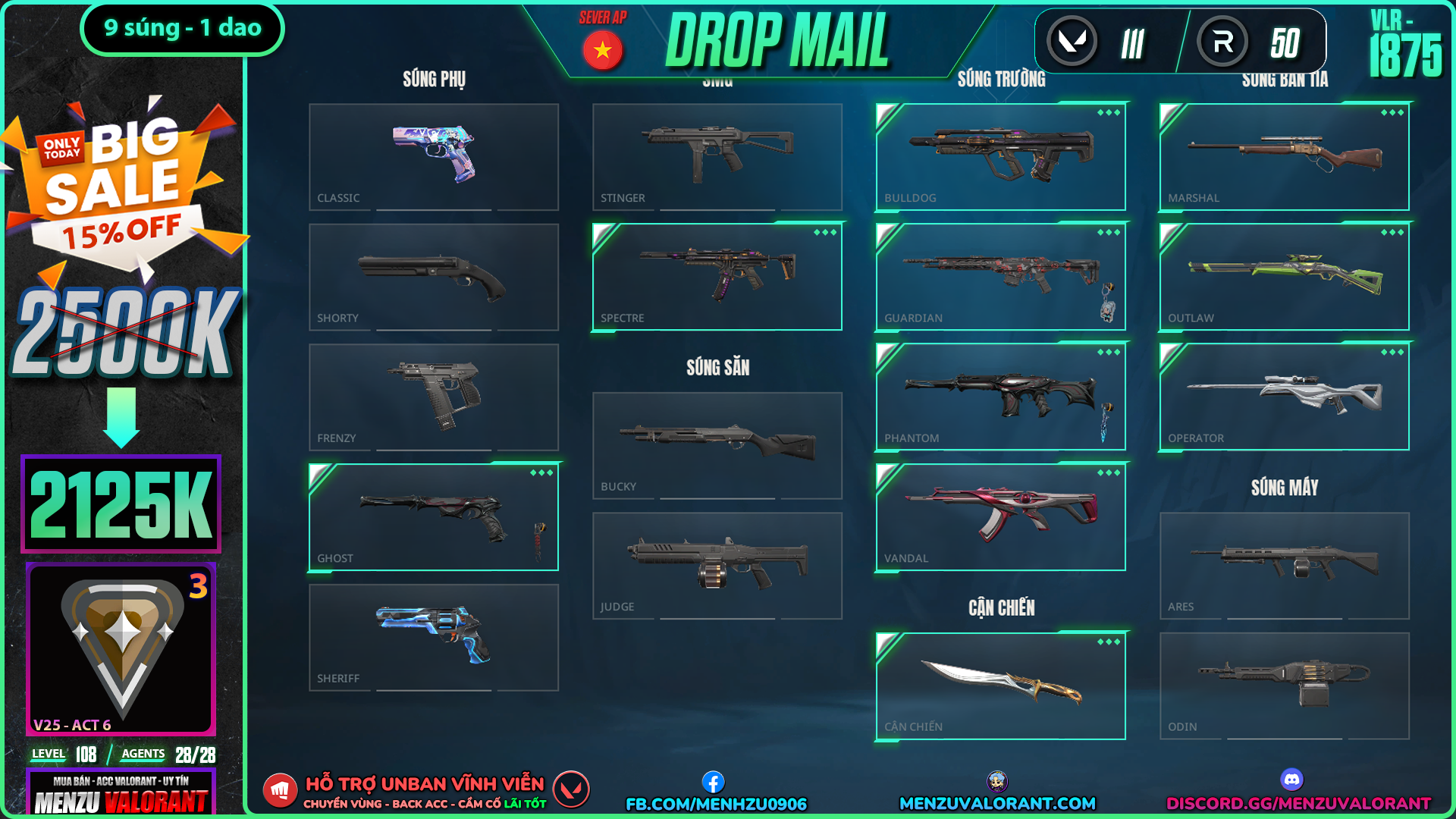 Acc Valorant vlr1875 | Rank BRONZE 3 | Giá: 2.125.000đ