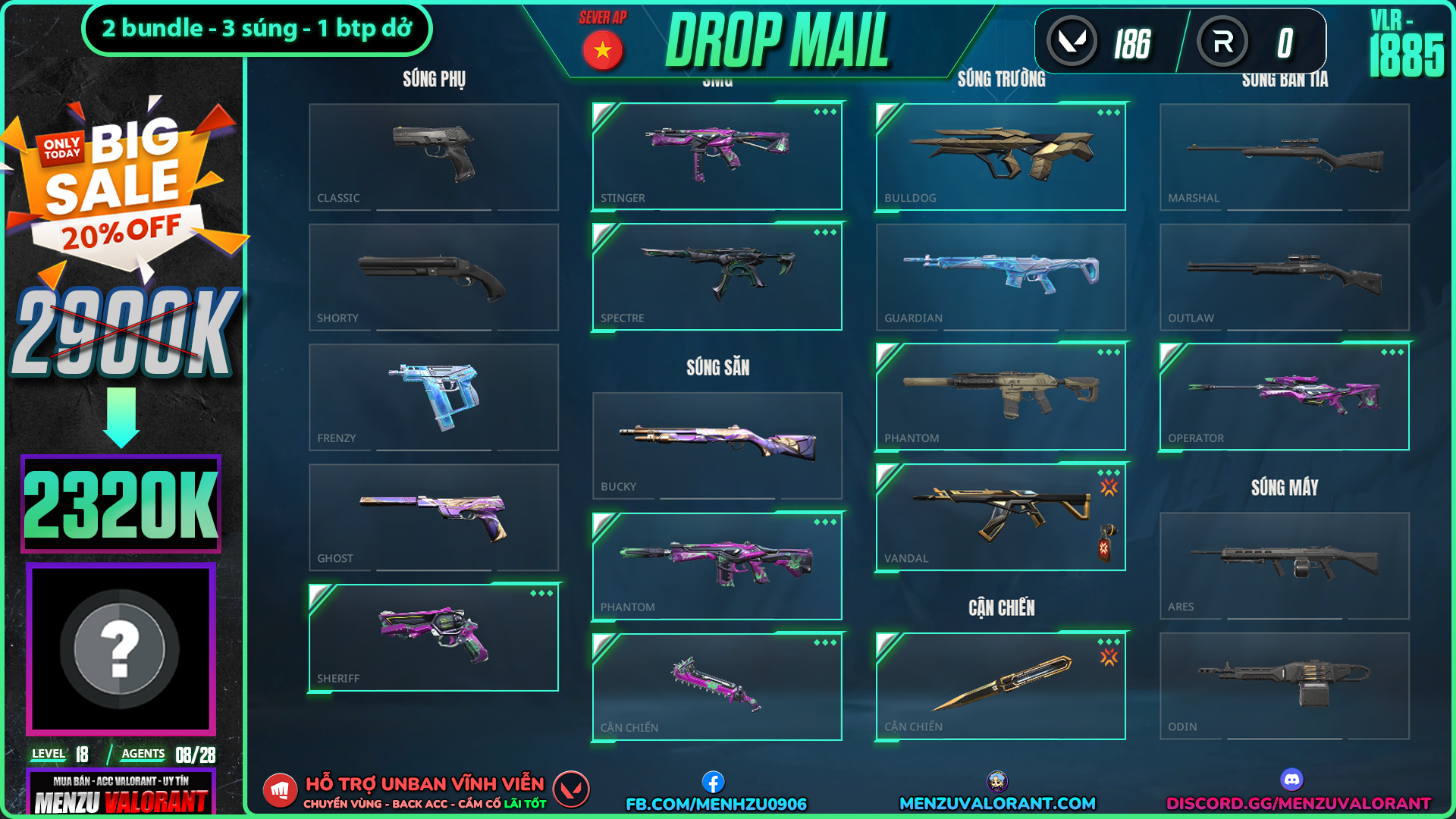 Acc Valorant vlr1885 | Rank Unranked | Giá: 2.320.000đ
