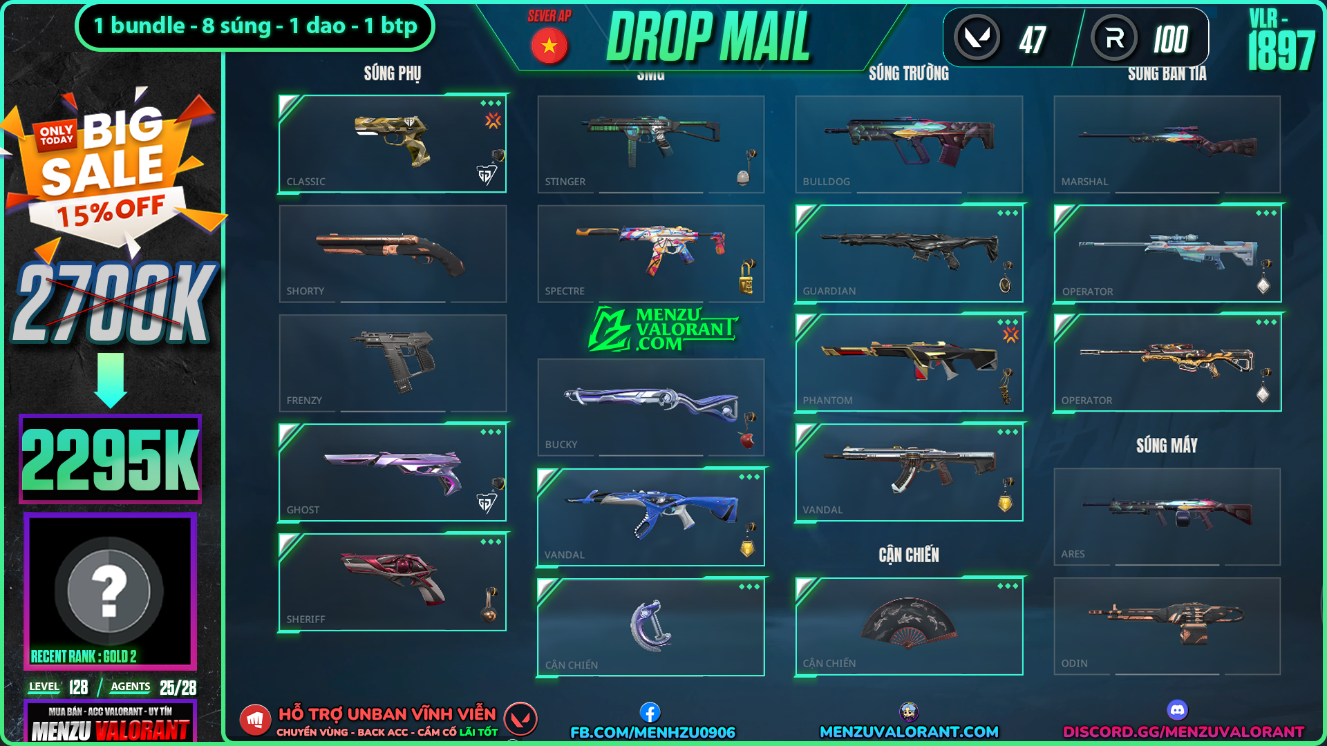 Acc Valorant vlr1897 | Rank SILVER 1 | Giá: 2.295.000đ