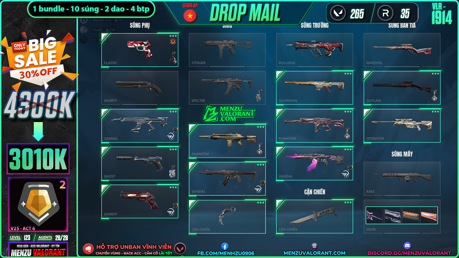 Acc Valorant vlr1914 | Rank GOLD 2 | Giá: 3.010.000đ