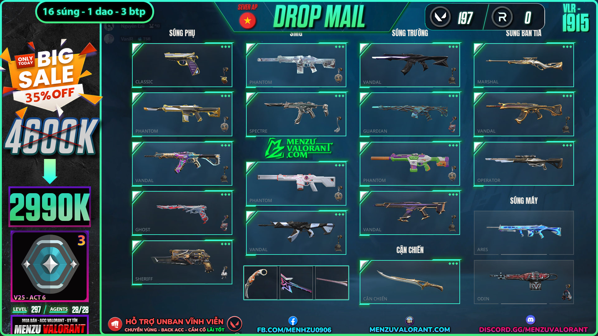 Acc Valorant vlr1915 | Rank PLATINUM 3 | Giá: 2.990.000đ
