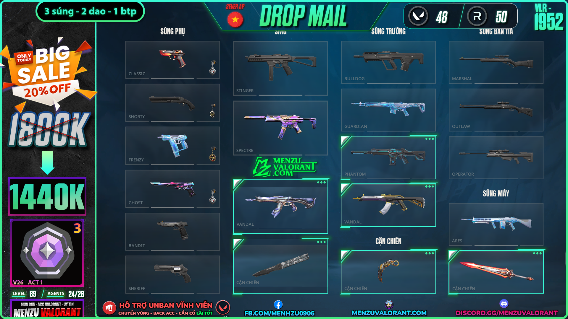 Acc Valorant vlr1952 | Rank DIAMOND 3 | Giá: 1.440.000đ
